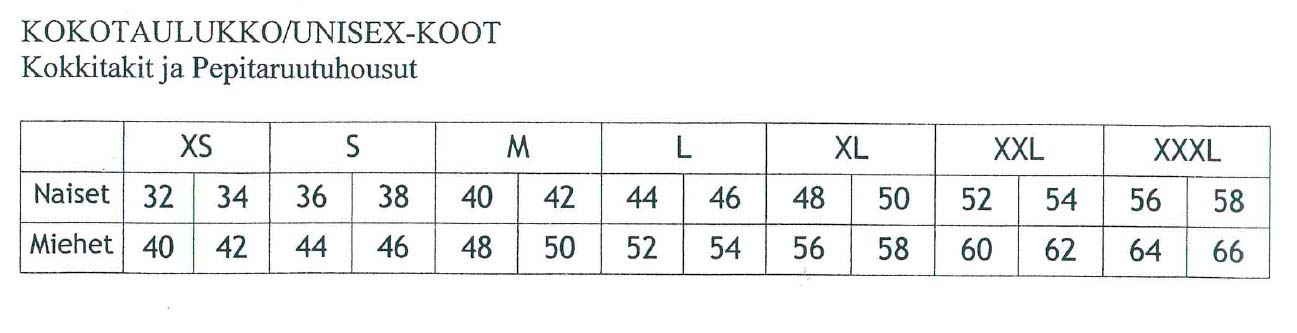(nepparit). Käännettävät hihansuut, venttiilit kainaloissa. Sopii teolliseen pesuun.