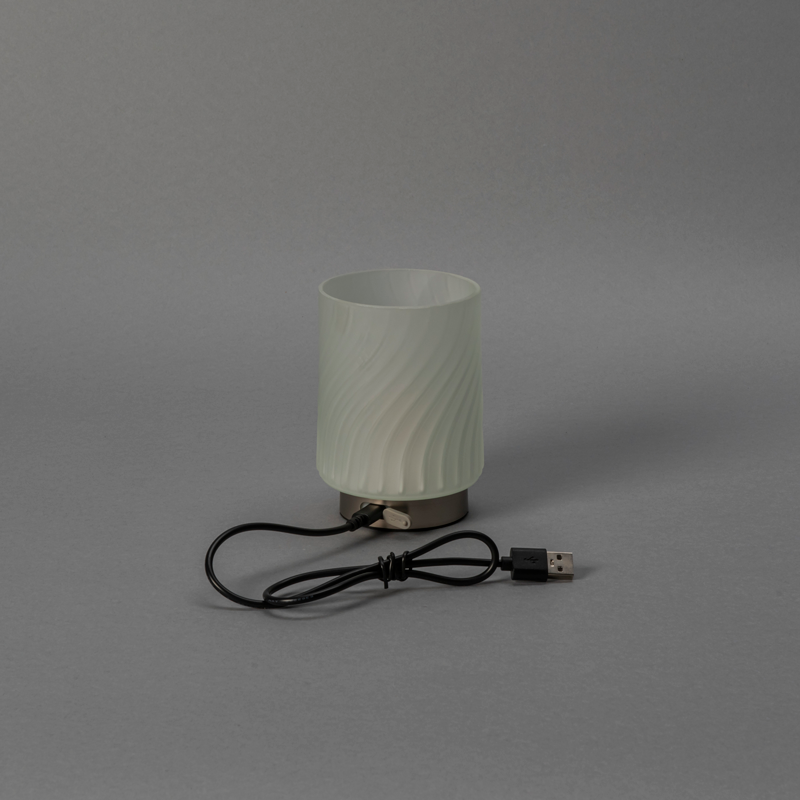 Sähkökäyttöinen lamppu on paloturvallinen ja helppokäyttöinen vaihtoehto kynttilöille. LED-polttimon kirkkautta voi säätää tarpeen mukaan. Pakkauksessa valaisin ja USB-latausjohto. Kahden vuoden takuu.